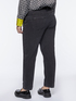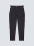 • hoher Bund mit Gummizug und angeriehenem Rand, schräg geschnittene Taschen, Schlaufen in der Taille.