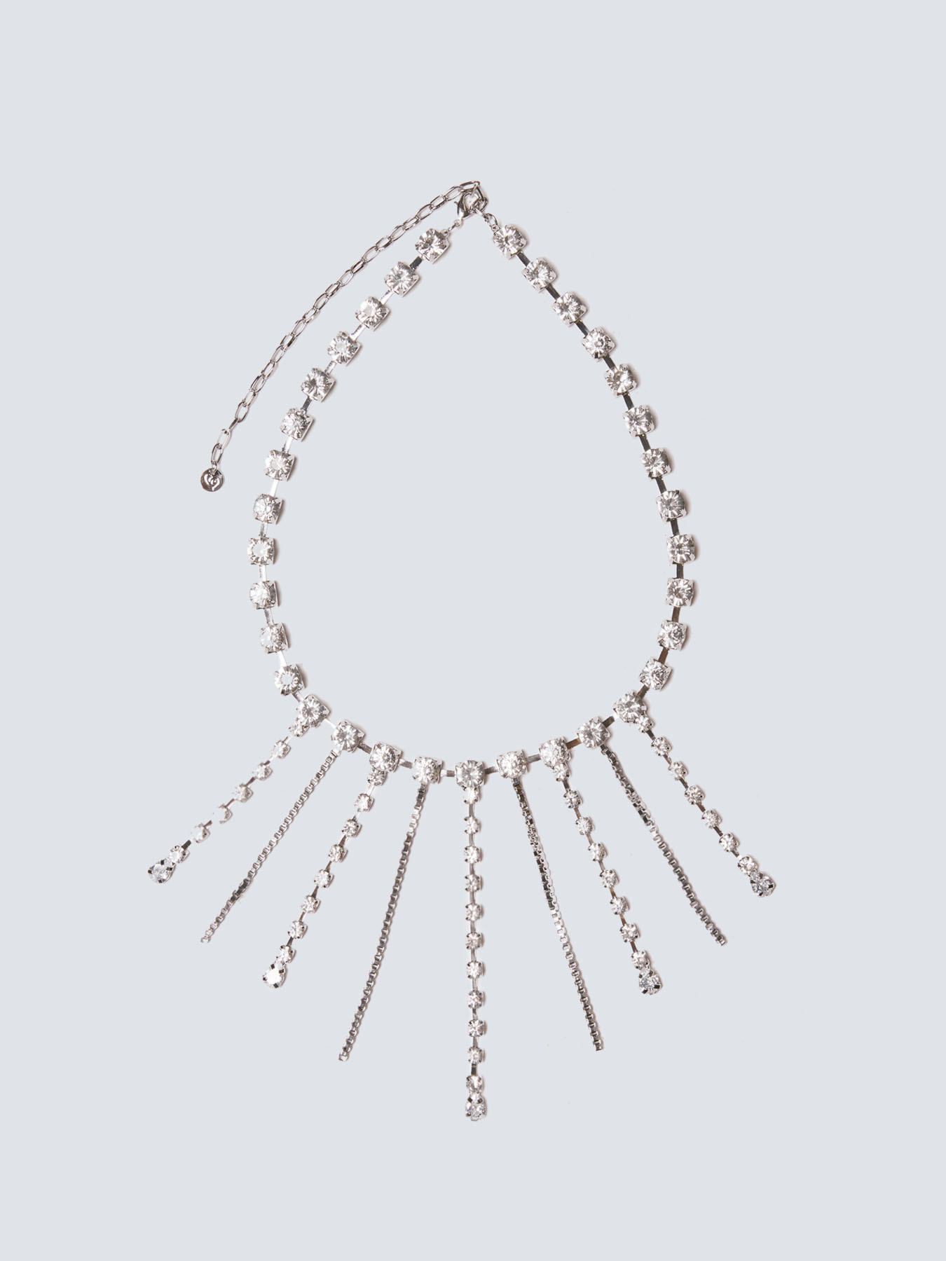 • Kurze Halskette mit strahlenförmig angeordneten Strassketten