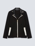 • Kragen und Revers aus glänzendem Stoff.