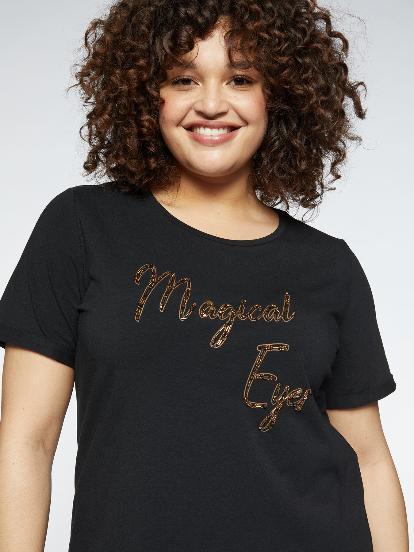 • T-Shirt mit gesticktem Schriftzug aus Perlen im Ethno-Stil