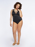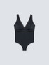 Costume intero con dettaglio ajour. Profondo scollo a V e scollo a U posteriore. Coppe removibili e cuciture per extra supporto.