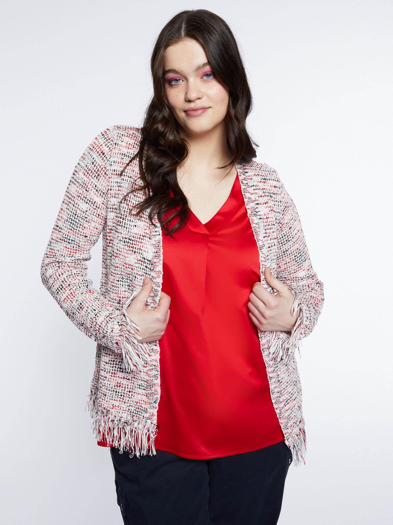 - Cardigan multicolore avec franges dans le bas et aux poignets
