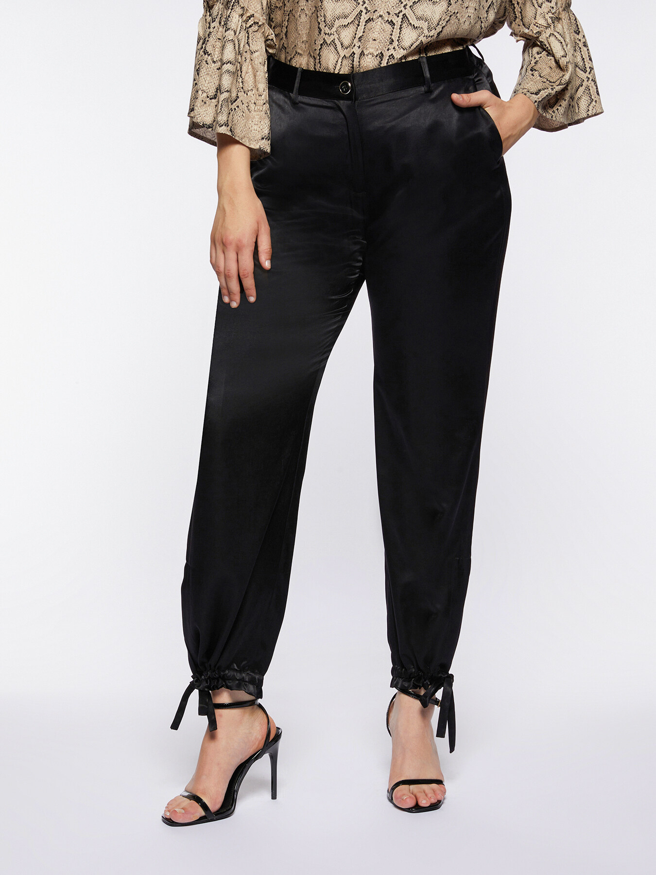 Pantalon en satin avec cordon de serrage dans le bas
