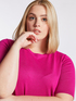 Maglia dalle maniche corte; scollo a barchetta; bordi a coste e linea dritta; perfetta con un cardigan, per un effetto twin set.