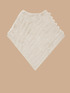 Mantella in pelliccia sintetica lavorata a righe; orlo asimmetrico che crea una punta; bordi in tricot lavorati a coste; taglia unica.