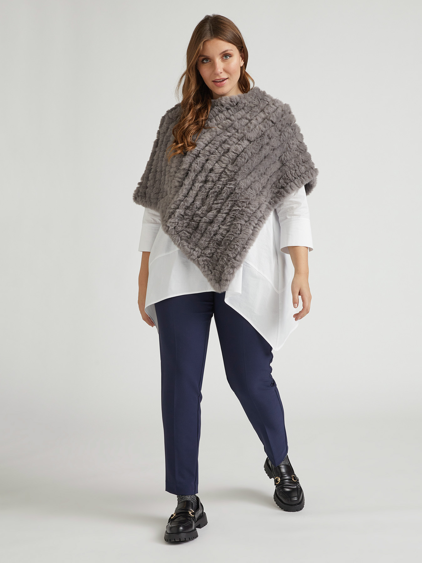 Mantella in tricot e similpelliccia; scollo a barchetta; fondo a punta davanti e dietro.