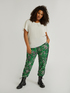 Pantaloni in viscosa dalla stampa floreale; bordi neri lungo le cuciture esterne; tasche all'americana