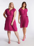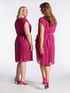 Vestito elegante in georgette crinkle; scollo a V, linea dritta a kimono, arricciature alla cucitura delle spalle; cintura nello stesso tessuto da inserire nei passanti in vita; fodera in tinta.